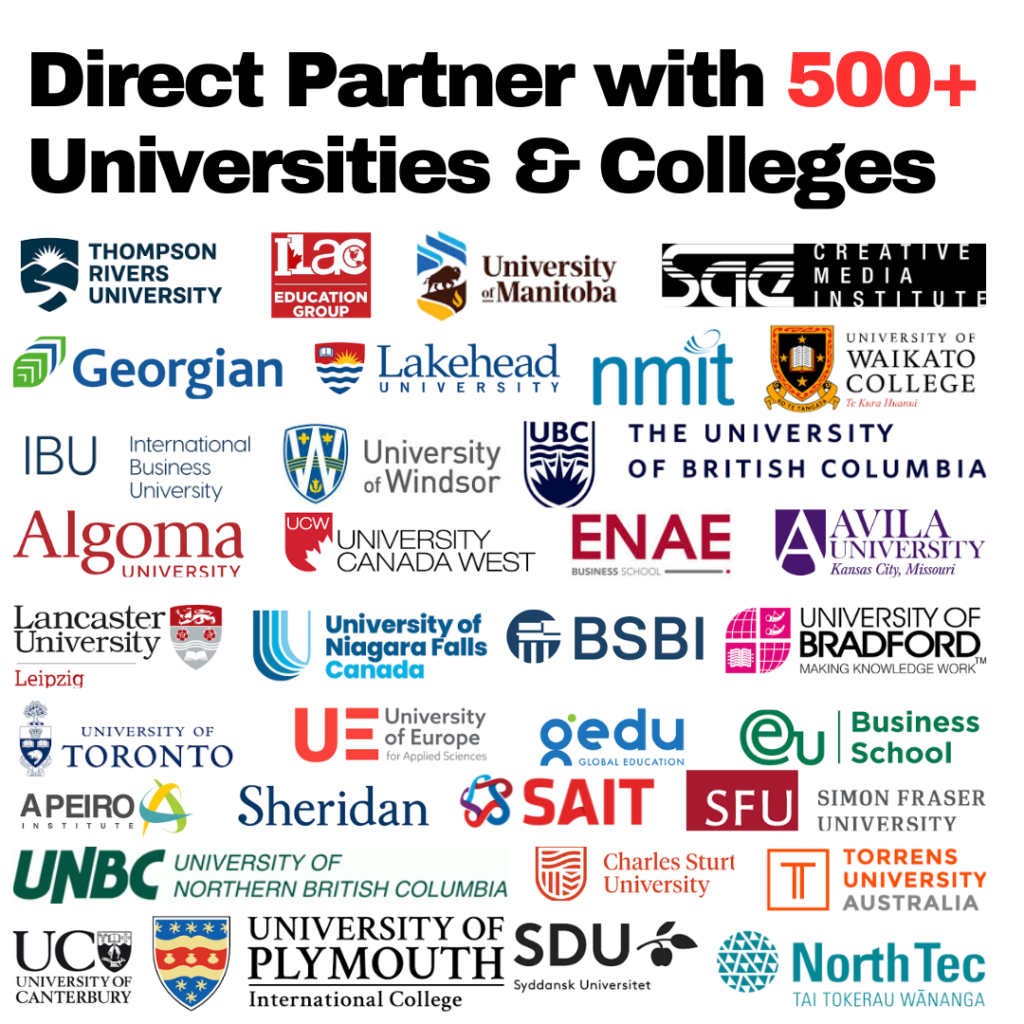 We offer over 400 paid internship programs in Canada that include post-work permit and Permanent Residency (PR) opportunities. As major corporate members of the Canadian Chamber of Commerce, we provide comprehensive application support for students pursuing studies in Singapore, Canada, the USA, UK, Australia, and New Zealand. Our partner institutions offer a diverse range of programs in IT, Engineering, Business, and Hospitality.